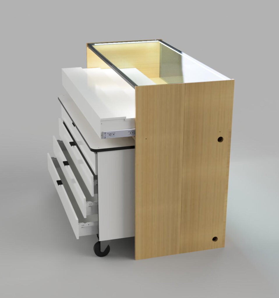 Specialty design fixtures, display cases and high functioning products developed to